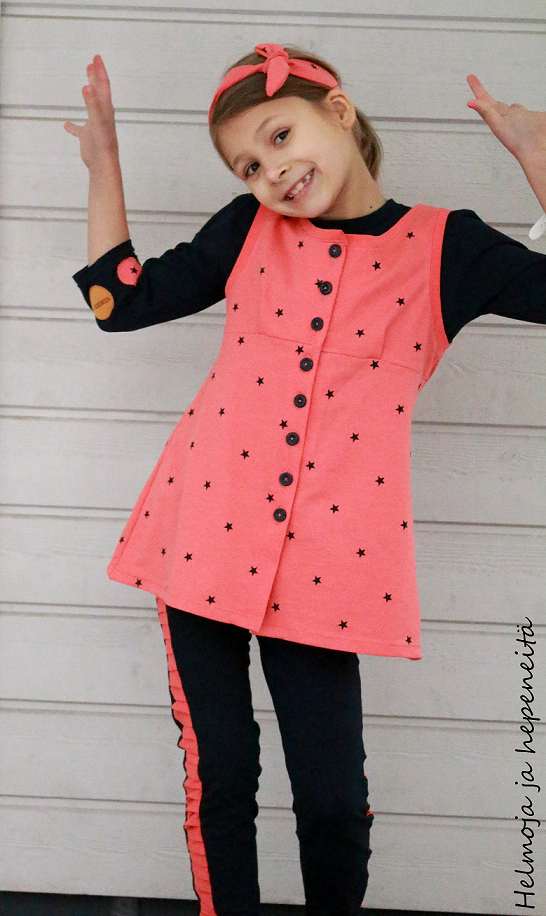Child's vest: Modified from hoodie pattern in Suuri Käsityö-lehti 8/2015 (the cute shorts pattern worn with the vest is from Unfancy designs)